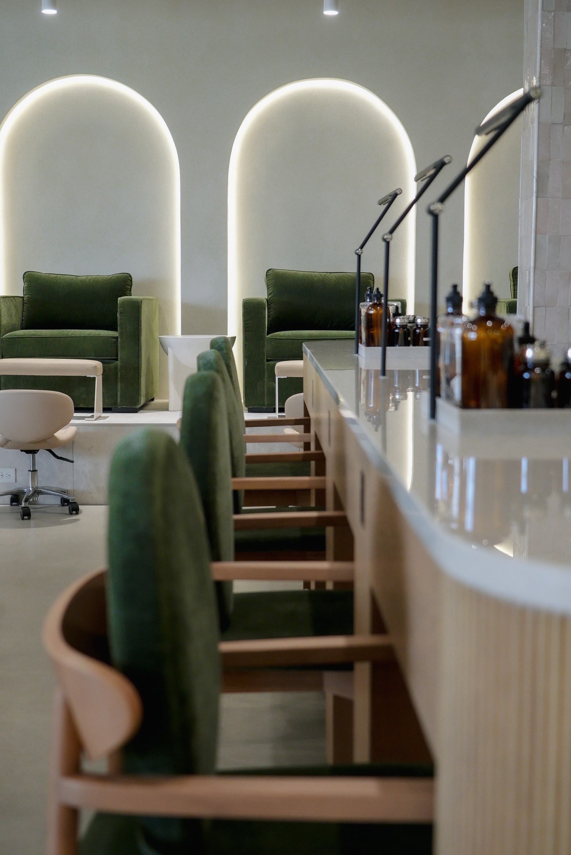 Enhance your experience with red and blue light therapy, wave massage table, intensive moisturizing and collagen treatments, extended massages, and elevated nail art.